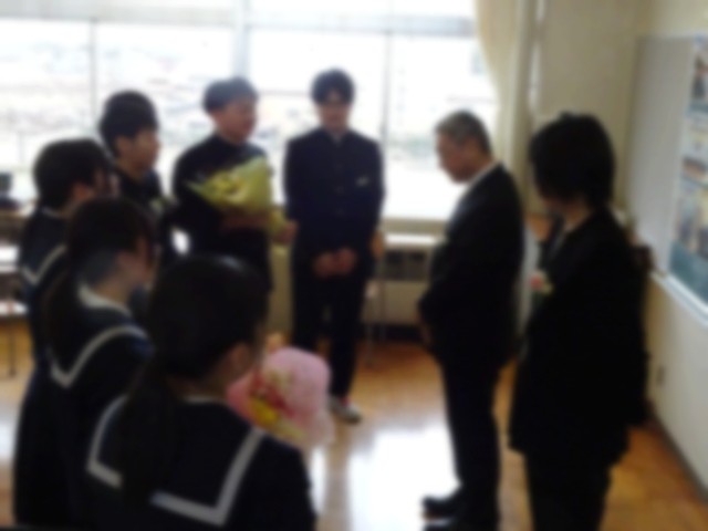 3年生は卒業式後、教室で最後の学活を行いました。3年間を振り返り、一人一人がみんなに向けてお話する時間、保護者の皆様へ感謝の言葉を伝える場面、最後は2人の担任の先生へ感謝の気持ちが伝えられる場面と、最後まですてきな時間となりました。卒業しても、いつまでもこの7人の絆は不滅です!これからの卒業生の未来へ幸あれ!まずは明日の入試でこれまで努力してきた成果を精一杯発揮してきて下さい!