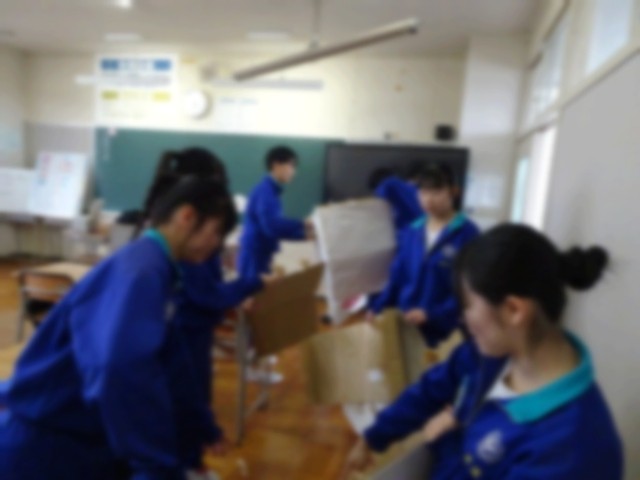 2年生は教室の大清掃をしていました。教室前にあった「卒業おめでとうケーキ」がとうとう解体されてしまいました・・・来年もいろいろなものを作り出してくれることが楽しみです!